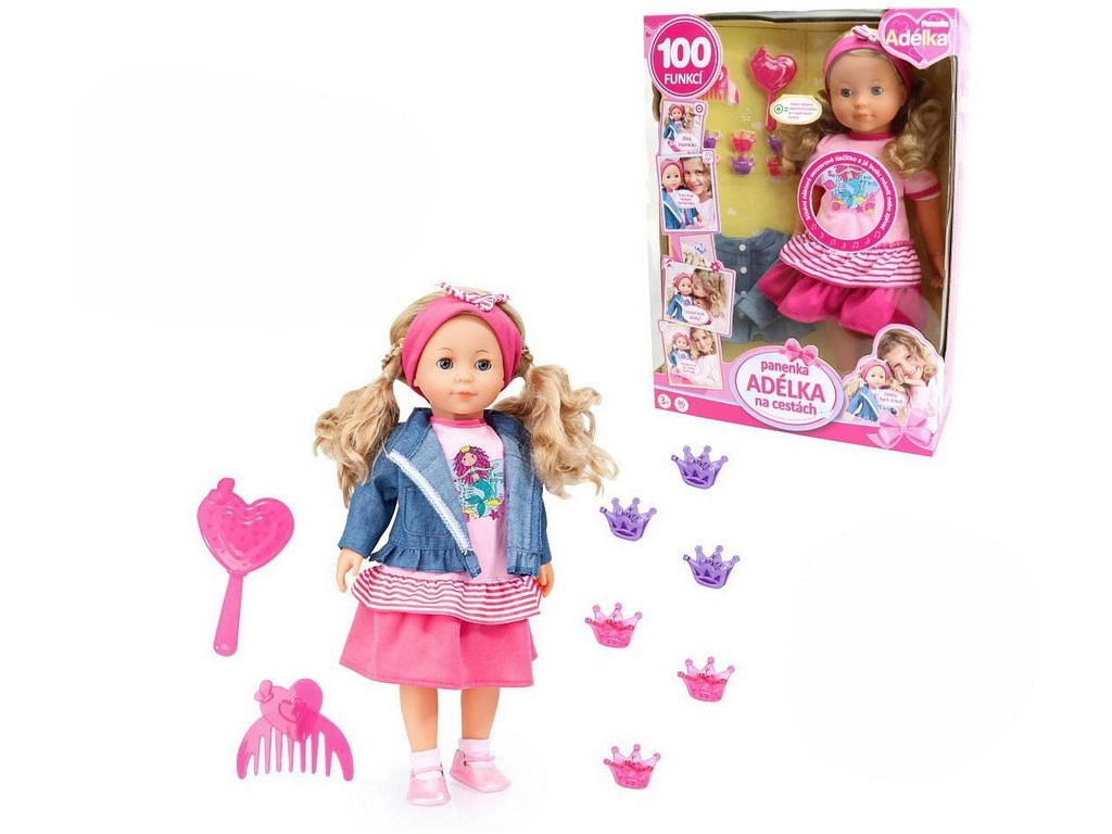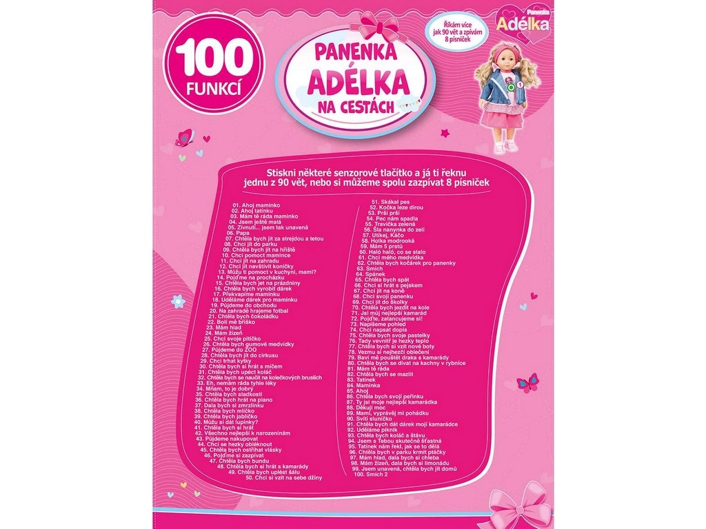 Entdecken Sie den Zauber der Mutterrolle mit der Puppe Adélka. Diese einzigartige Puppe verfügt über 90 tschechische Sätze wie "Mama, erzähl mir eine Geschichte" oder "Ich hab dich lieb Mama!", die dieses interaktive Spielzeug spricht. Darüber hinaus singt sie acht traditionelle tschechische Lieder wie "Holka modrooká" oder "Skákal pes" und kann sogar lachen. Mit jedem Druck auf ausgewählte Stellen erleben Kinder stundenlange Abenteuer.