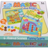 Mosaik mit farbigen Vorlagen ideal für kreative Kinder. Enthält 6 verschiedene Umgebungen, in denen Tiere leben. Kinder können den Körper der Tiere mit farbenfrohen Hütchen ergänzen.
