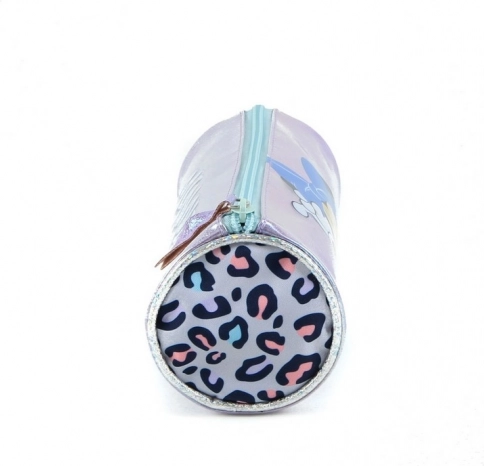 Dieses wunderschöne Stifteetui mit Minnie-Motiv ist ein ideales Accessoire für jede Liebhaberin von Stil und Glanz. Seine irisierende Oberfläche in Purpur mit Leopardenmuster zieht immer Aufmerksamkeit auf sich. Das Etui besteht aus einer Kombination von Textil und Kunststoff, was seine Haltbarkeit und lange Lebensdauer garantiert.