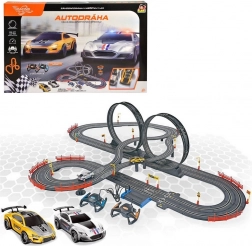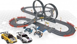 Erleben Sie die Rennbahn, die ideal für kleine und große Rennfahrer ist. Enthält zwei Autos und zwei Controller, was das Rennen zu zweit ermöglicht. Loopings mit Brücke und weiteres Zubehör garantieren dynamische und herausfordernde Fahrten.
