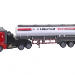 Das Spielzeug imitiert genau einen echten Tankwagen mit Details wie den Aufschriften 'Liquified Gas' und 'NO SMOKING'.