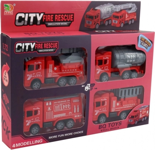 Rückziehauto Feuerwehr für Kinder ab 3 Jahren. Kompakt, aus Kunststoff, in ansprechender Windowbox-Verpackung.