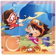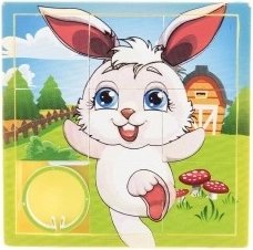 Dieses Schiebepuzzle ist ein unterhaltsames Spielzeug, das Kinder stundenlang beschäftigt. Es besteht aus einem Set von acht gleich großen Teilen mit seitlichen Rillen, die ein endgültiges Bild bilden. Die Teile lassen sich leicht verschieben und sind gerahmt, damit sie nicht herausfallen. Der Rahmen enthält ein Miniaturbild des Endbildes, das als Vorlage für die Platzierung der Teile dient.
