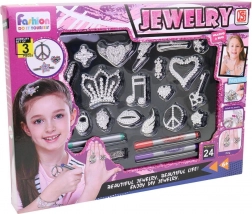 Fördern Sie die Kreativität und Feinmotorik Ihrer Kinder mit dem Schmuck-Malset. Dieses Spielzeug wurde entwickelt, um stundenlangen Spaß zu bieten, während die Kinder ihre eigenen einzigartigen Schmuckstücke kreieren können. Es enthält verschiedene Elemente, die leicht bemalt und personalisiert werden können: