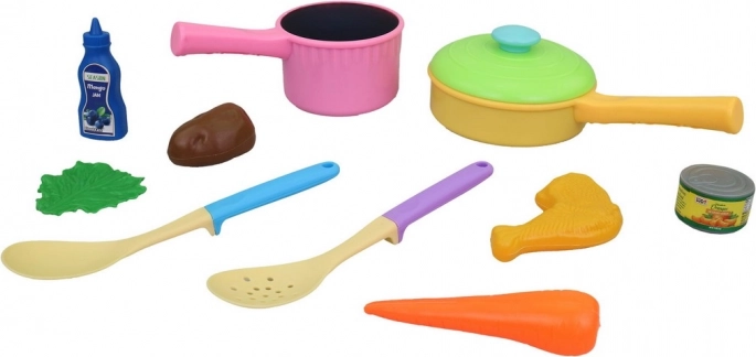Dieses Küchenset ist perfekt für kleine Kochliebhaber. Mit Abmessungen von 28 x 20 cm ist es ideal für Kinderspiele. Aus strapazierfähigem Kunststoff gefertigt, garantiert es Sicherheit und Langlebigkeit. Die Verpackung ist praktisch und wird in einem Beutel mit Karte geliefert, was eine einfache Lagerung ermöglicht.