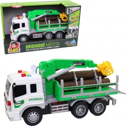 Holztransporter mit Hebearm und Licht- und Soundeffekten ist das perfekte Geschenk für jeden kleinen Bewunderer von Transportmitteln.