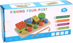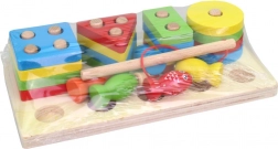 Dieses Holz-Steckspiel bietet zwei verschiedene Spiele, die Geduld und Konzentration Ihrer Kinder fördern. Der erste Teil besteht aus geometrischen Formen in Grundfarben, die richtig in die Öffnungen eingesetzt werden müssen. Der zweite Teil bringt Spaß mit dem Fang von bunten Fischen mit Hilfe einer Magnetangel. Beide Spiele tragen zur Entwicklung der Feinmotorik und der Hand-Augen-Koordination bei.