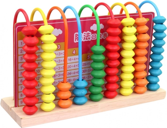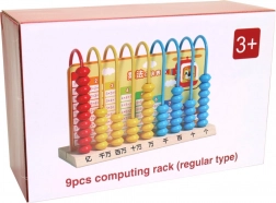 - Neun Stäbe mit jeweils zehn Holzkügelchen ermöglichen einfaches Addieren und Subtrahieren.