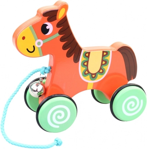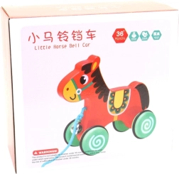 Dieses hölzerne Ziehspielzeug in Form eines Pferdes bietet nicht nur Spaß, sondern stimuliert auch die Sinne dank des Glöckchens, das beim Bewegen einen sanften klingenden Ton abgibt. Es besteht aus hochwertigem Holz und hat eine Größe von 16 cm, was es leicht handhabbar für kleine Kinderhände macht.