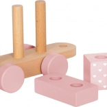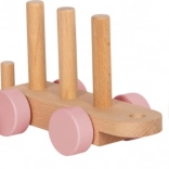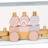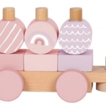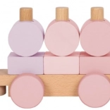 Dieser Holzzug umfasst eine Lokomotive mit zwei Waggons und 14 farblich abgestimmten Bauteilen, die das Stapeln und freies Spiel unterstützen. Die Bausteine werden auf Holzstäbe gesteckt, was die Feinmotorik und Bewegungskoordination fördert. Einzelne Teile können auch separat als Holzbausteine verwendet werden, ideal für die Entwicklung der Fantasie kleiner Baumeister.
