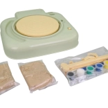 Diese Töpferscheibe mit Zubehör ist ein unterhaltsames und lehrreiches Hilfsmittel für zu Hause. Hergestellt aus strapazierfähigem Kunststoff, sorgt sie für langlebiges und sicheres Spielen. Das Set enthält alles, was zum Gestalten benötigt wird, und fördert Kreativität und manuelles Geschick.