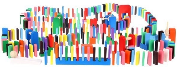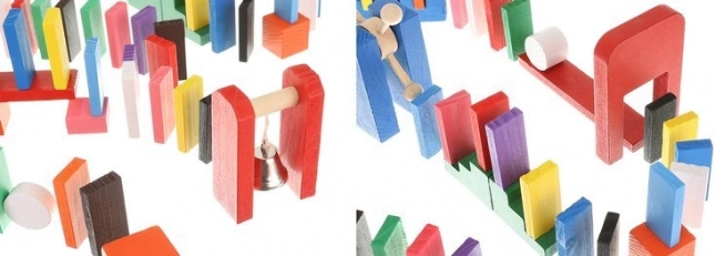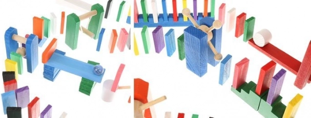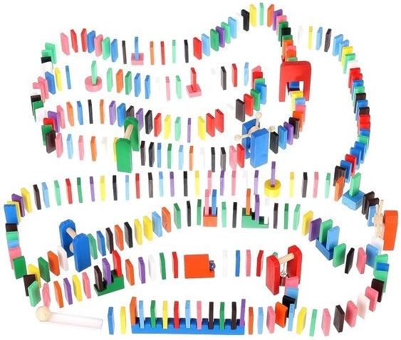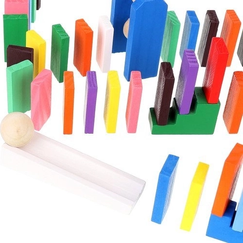 Das Set wurde entwickelt, um die Kreativität des Kindes zu fördern und ermöglicht das Erstellen verschiedenster Konstruktionen wie Tiere, Häuser, Fahrzeuge und vieles mehr. Das Set enthält außerdem viele zusätzliche Elemente, die die Gestaltungsmöglichkeiten erweitern. Zu diesen Elementen gehören zum Beispiel eine Schaukel, Treppen, eine Windmühle, Brücken und mehrere weitere Teile. Dominosteine aus Holz sind sehr langlebig und vor allem sicher für Kinder! Jeder Block hat abgerundete Kanten und ist mit einer speziellen Farbe beschichtet, die nicht abfärbt und keinerlei toxische oder chemische Stoffe enthält.