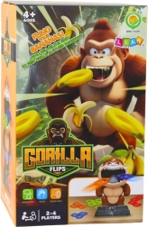 Das Set enthält 20 bunte Ringe in 4 Farben und eine große Gorillafigur auf einer stabilen Basis. Der Gorilla dreht sich automatisch, was das Spiel noch interessanter und anspruchsvoller macht.