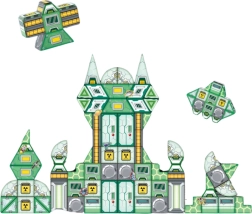 Die 4D-Diamantoberfläche verleiht den Konstruktionen ein modernes, funkelndes Aussehen, das Kinder zum kreativen Arbeiten inspiriert. Das Set beinhaltet sowohl klassische Formen – Quadrate, Dreiecke – als auch einzigartige Dekorationen, Aufkleber mit Robotern und Raketen zur Unterstützung der Fantasie.