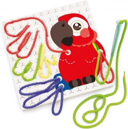 Enthält eine robuste Fädelplatte mit Papageienmotiv, vier stabile Tierkarten und acht farbige Schnürsenkel mit Endkappen für einfache Handhabung. Das Set ist ideal für das Basteln zu Hause und in Kindergärten und unterstützt gleichzeitig Motorik, Grifftraining und visuelle Wahrnehmung.