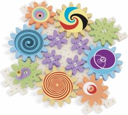Der Baukasten Kaleidoskopische Zahnräder ermöglicht es Kindern, eine großartige Kette mit unterschiedlich großen Zahnrädern zu erstellen, die sich wie in einem Karussell drehen. Er besteht aus 38 Teilen, darunter perforierte Platten, Stifte und Aufkleber mit buntem Druck. Beim Spielen lernen Kinder die grundlegenden Prinzipien der Mechanik und entdecken optische Effekte, die wahrlich magisch sind.