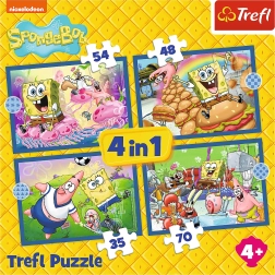 TREFL bringt Spaß für die ganze Familie mit vier SpongeBobs Leben Puzzles in einem Set. Jedes Puzzle im Set hat eine unterschiedliche Anzahl an Teilen - 35, 48, 54 und 70, was eine einzigartige Chance für verschiedene Fähigkeitsstufen bietet.