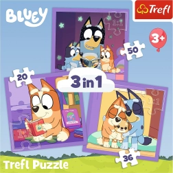 Entdecken Sie die Magie des Puzzelns mit dem TREFL Puzzle Treffen Sie Bluey 3-in-1. Dieses Puzzle bietet: