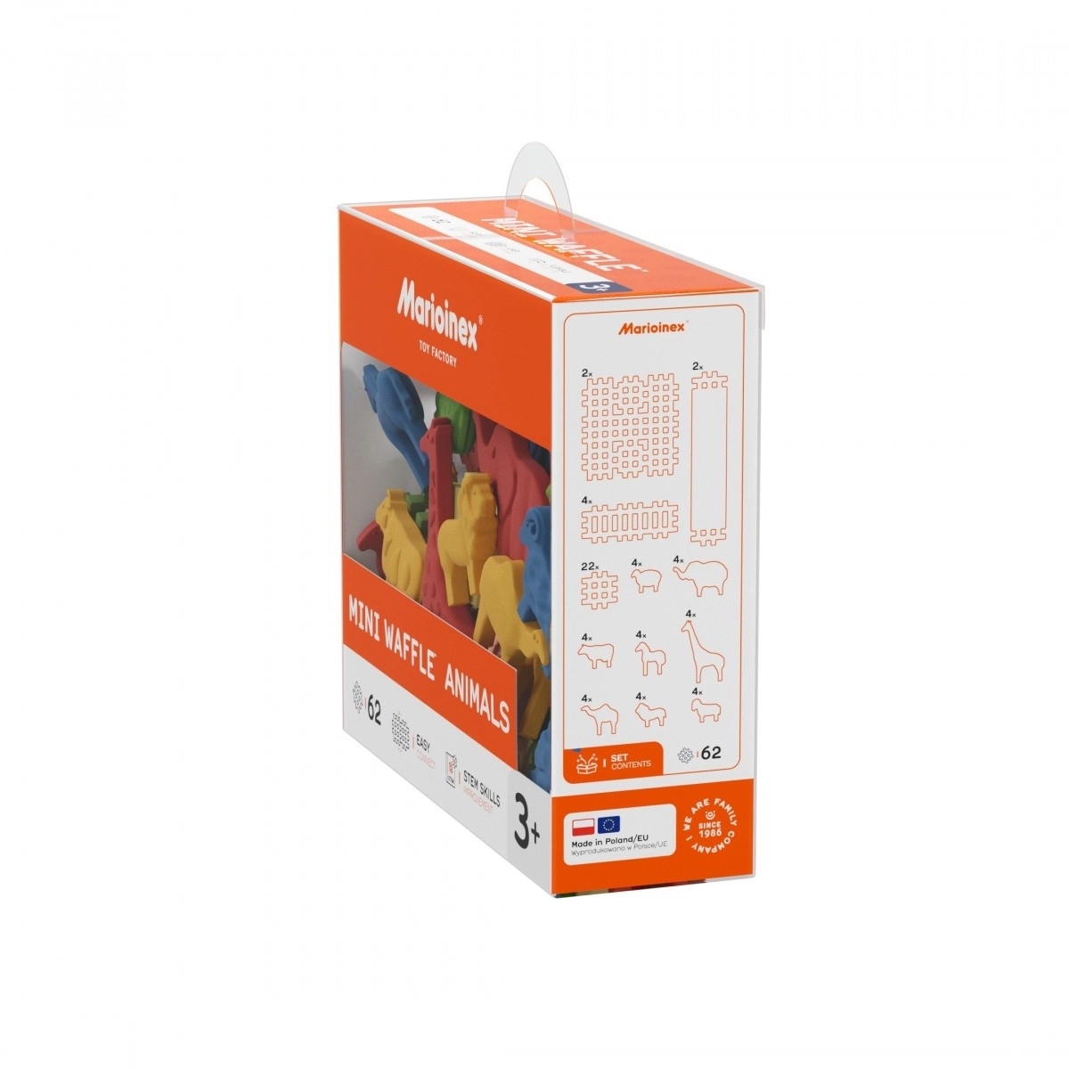 Das Bauen mit Mini Waffle bereitet nicht nur Freude, sondern fördert auch die Entwicklung der Fantasie, die manuellen Fähigkeiten und das logische Denken. Das Set enthält Elemente in verschiedenen Formen und Farben, die es Kindern ermöglichen, einzigartige Bauwerke zu erschaffen. Flache Tierfiguren fügen ein realistisches Element hinzu und unterstützen die Geschichtenentwicklung, was dieses Set zu einem idealen Werkzeug für das Lernen durch Spielen macht.