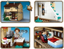 Das LEGO Harry Potter Set Ligusterweg 4: Besuch von Tante Magda bringt das detailreiche Familienhaus der Dursleys mit Wintergarten und aufklappbarer Konstruktion für einfachen Zugang zum reich ausgestatteten Innenraum. In der Küche mit Essbereich findest du einen abnehmbaren Tisch, im Wohnzimmer und in den Schlafzimmern zahlreiche thematische Zubehörteile, und es gibt auch eine geheime Tür zur Kammer unter der Treppe. An Harrys Fenster befinden sich abnehmbare Gitter, die an die berühmte Fluchtszene erinnern.