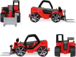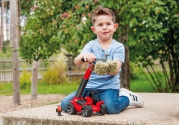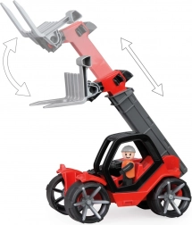 Teleskoplader Truxx2 ist aus hochwertigem Kunststoff gefertigt und hat eine sehr stabile Konstruktion. Enthalten ist auch eine abnehmbare Kabine mit Figur und gummierte Räder für leisen Betrieb.