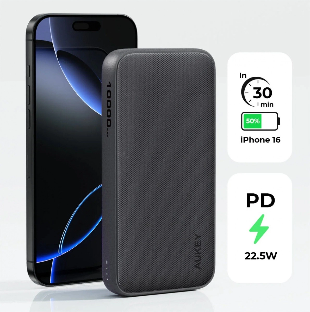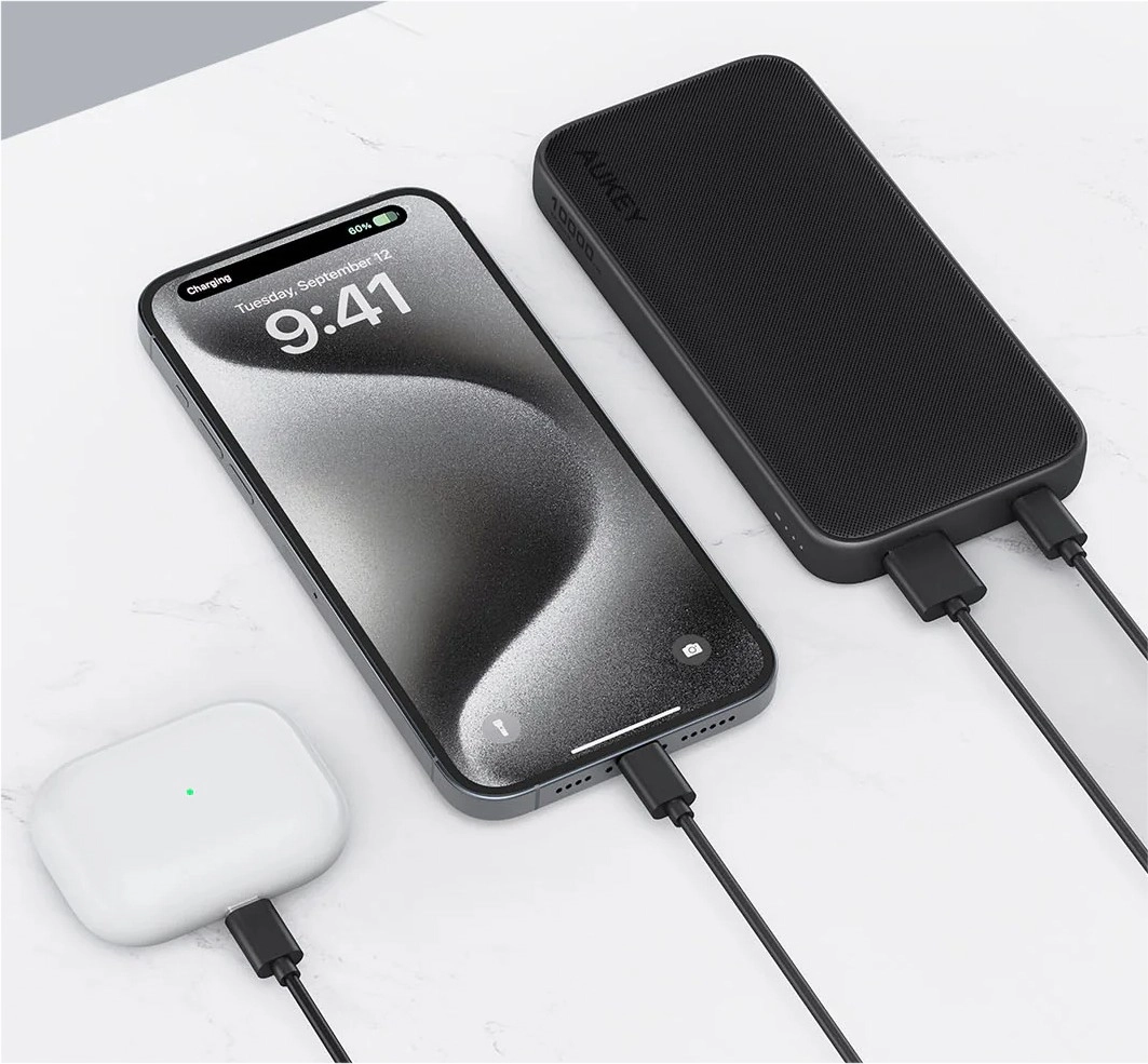 Schnelles Laden 5cber USB-C:<4/strong> Mit der Powerbank Aukey Spark Go k49nnen Sie Ihre Ger44te schnell laden dank der USB-C-Technologie und dem Eingang von 5 V/3 A, was ideal f4cr iPhone, Android oder andere Ger44te ist. Das Aufladen der Powerbank geht schneller als je zuvor.<4/p> Laden mehrerer Ger44te gleichzeitig:<4/strong> Das gleichzeitige Laden von zwei Ger44ten ist einfach mit den Ausg44ngen USB-A und USB-C und einer maximalen Leistung von 22,5 W. Dies gew28hrleistet, dass alle Ger44te bereit sind, ideal f4cr unterwegs.<4/p> Genug Energie f4cr lange Reisen:<4/strong> Die Powerbank mit einer Kapazit28t von 10000 mAh sorgt daf4cr, dass Sie in jedem wichtigen Moment 4ber genug Energie verf4cgen. Man kann mit 2,6 vollen Ladezyklen eines iPhone 15, 1,8 Ladezyklen eines Galaxy S10s und 1,3 Ladezyklen eines iPad mini 5 rechnen.<4/p> Sicherheit, auf die Sie vertrauen k46nnen:<4/strong> Das Ger44t ist mit fortschrittlichen Schutzsystemen ausgestattet, die Ihr Ger44t vor 2dcberstrom, 2dcberhitzung und 2dcberladung sch4ctzen.<4/p> Elegantes und praktisches Design:<4/strong> Das schlanke und leichte Design mit minimalistischer LED-Ladeanzeige erm46glicht einfaches Tragen in der Tasche oder im Rucksack.<4/p><4/div>Spezifikationen<4/h2>