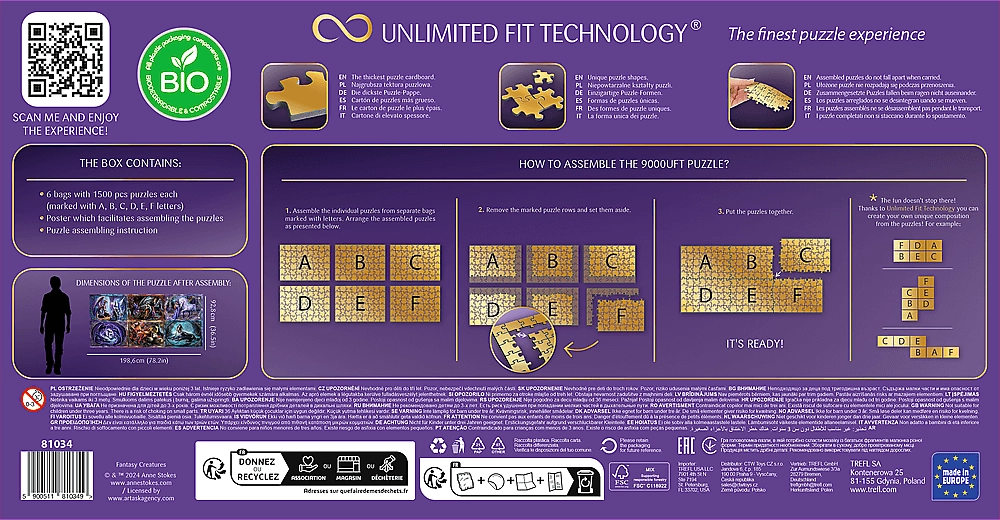 Entdecken Sie den Zauber der höchsten Qualität mit einem Puzzle, das aus dem stärksten blauen Kartonuntergrund hergestellt wird. Dank der einzigartigen UFT-Technologie (TREFL Unlimited Fit Technology) können Sie einzelne Bilder miteinander verbinden und eigene Kompositionen erstellen.