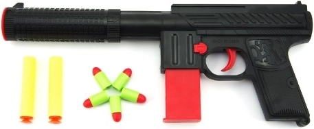 Das Design mit abnehmbarem Schalldämpfer und rotem Magazin regt die Fantasie an und verleiht dem Spiel eine authentische Note, ohne die Sicherheit zu beeinträchtigen.