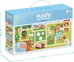 Das DODO Puzzle Labyrinth Mein Bauernhof begeistert Kinder mit seiner bunten Illustration des Landlebens - von Traktoren über Gärten bis hin zu niedlichen Tieren wie Kühen, Schweinchen, Kaninchen, Schafen, Küken und Entenküken. Kinder lernen in spielerischer Form den Bauernhof und seine Bewohner kennen.