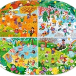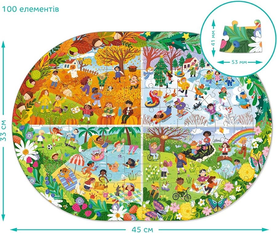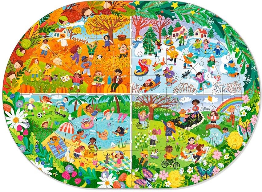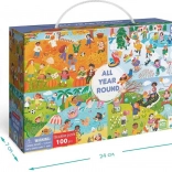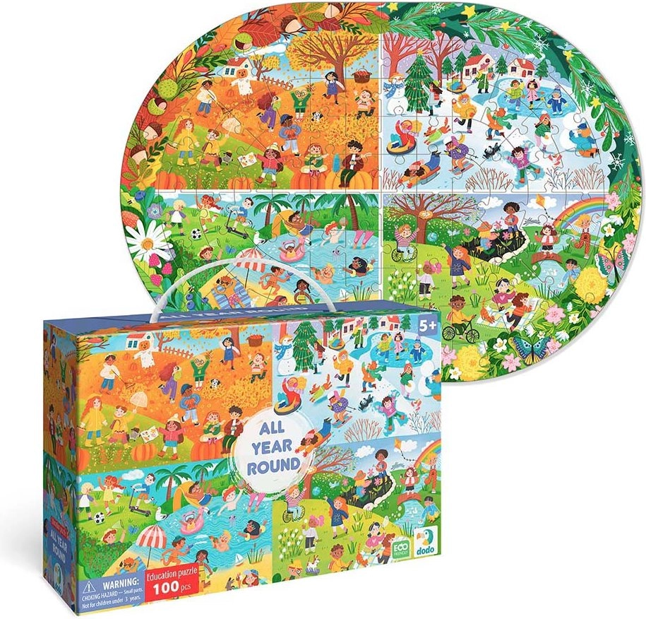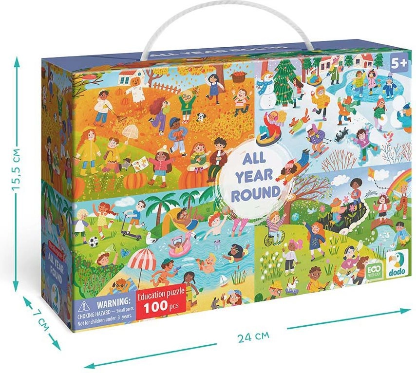 Das Puzzle DODO – Das ganze Jahr ist ein ideales Geschenk für alle Puzzle-Liebhaber. Dieses Puzzle enthält 100 Teile, die ein farbenfrohes und detailliertes Bild der verschiedenen Jahreszeiten darstellen. Das zusammengesetzte Puzzle hat Abmessungen von 45 x 33 cm, was die perfekte Größe zum Rahmen und Ausstellen ist.