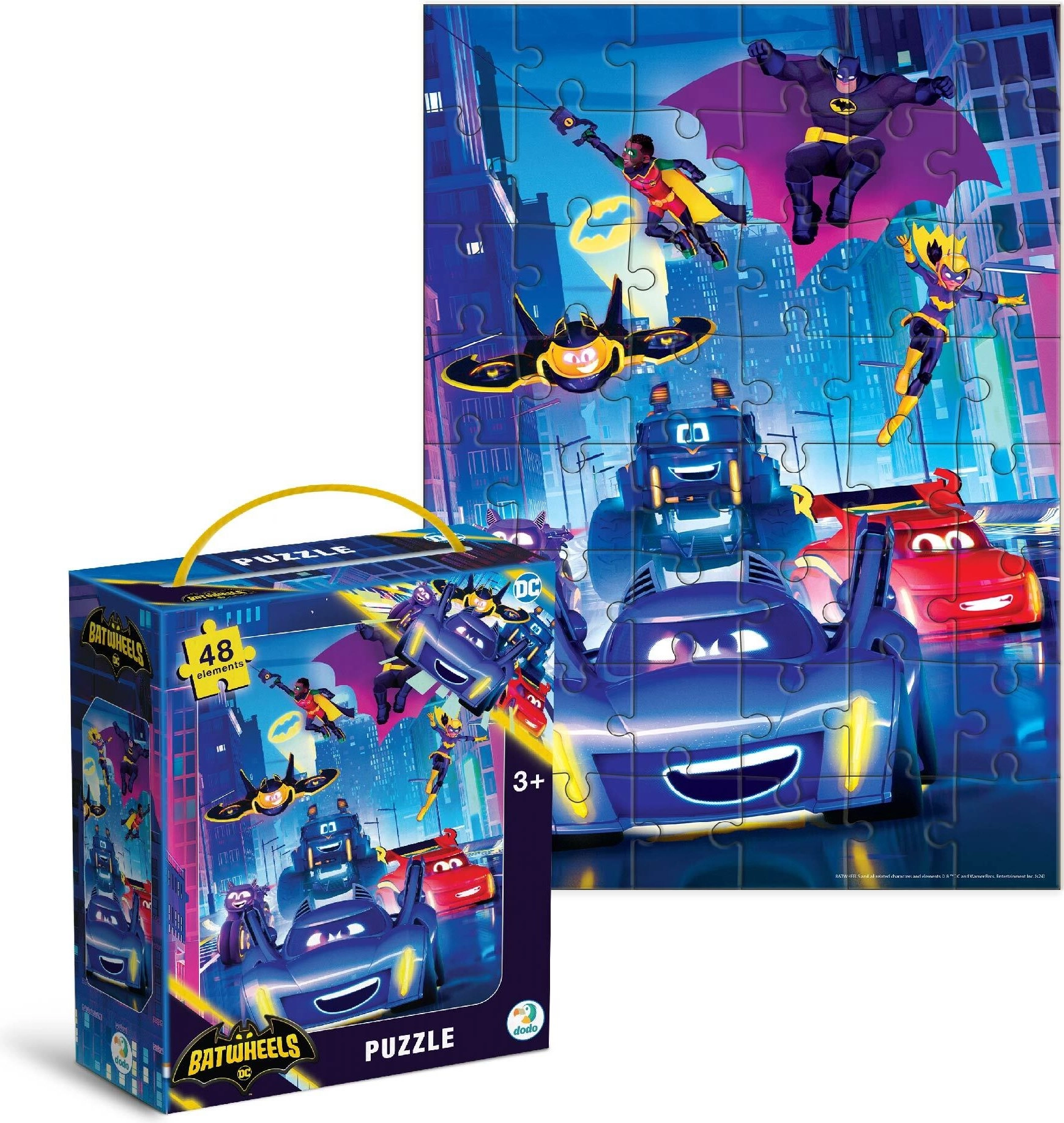 Entdecken Sie die Welt von Batwheels mit diesem unterhaltsamen Puzzle mit 48 aufregenden Teilen, die Kinder erfreuen. Die Abmessungen dieses Puzzles nach dem Aufbau sind ca. 23 x 32 cm, was eine ideale Größe für kleine Hände ist. Im Lieferumfang enthalten sind: