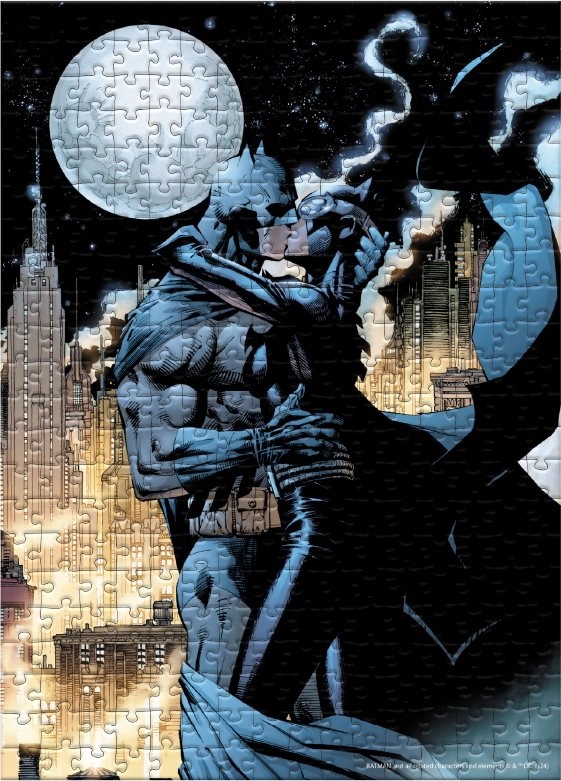 Tauchen Sie ein in die Welt von Gotham City mit diesem Puzzle mit Batman- und Catwoman-Motiv, das 350 Teile enthält und stundenlangen Spaß für alle Fans bietet.