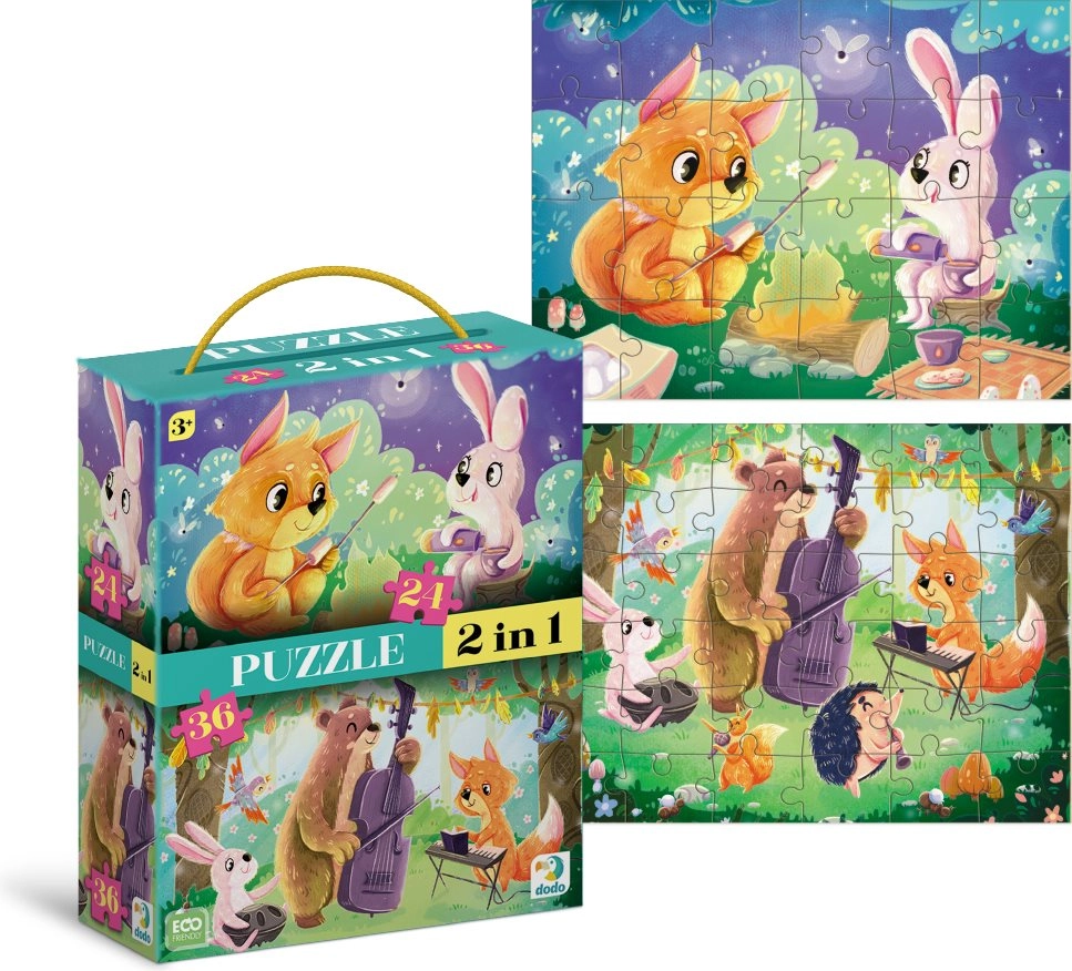 Entdecken Sie das DODO Puzzle Sommerabende 2v1, das zwei verschiedene Schwierigkeitsgrade durch zwei separate Puzzles bietet. Dank der Anzahl von 24 und 36 Teilen kann sich Ihr Kind schrittweise in seinen Fähigkeiten verbessern. Jedes Puzzle hat eine Größe von 27 x 22 cm, die ideal für kleine Kinderhände ist.