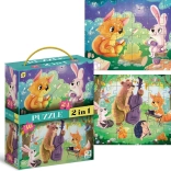 Fortschrittliches Puzzle für Kinder in Form von zwei separaten Puzzles. Unterschiedliche Anzahl von Teilen sorgt für Spaß und die Entwicklung von Fähigkeiten beim Zusammensetzen.