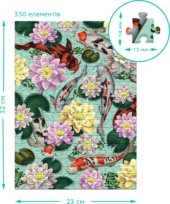 Entspannen Sie Ihren Geist mit schönen Puzzles, die Lotusblumen und Koi-Karpfen einfangen. Die Komplexität von 350 Teilen bietet Spaß und Entspannung für jeden Enthusiasten.