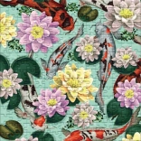 Schöne Motive mit Lotusblumen und Koi-Karpfen