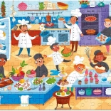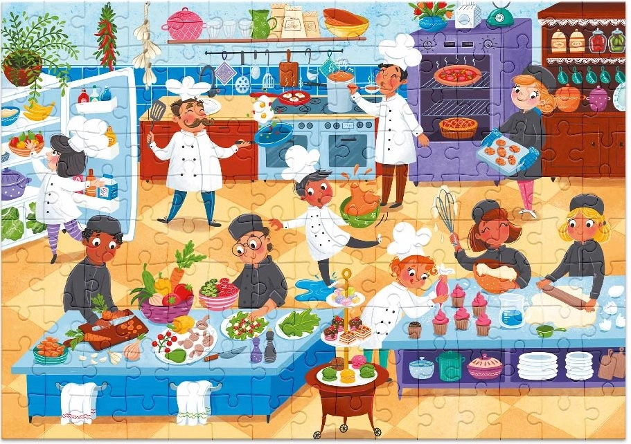 Erleben Sie ein Abenteuer in der Küche mit diesem einzigartigen Puzzle aus 150 Teilen! Beim Puzzeln werden Kinder zu kleinen Köchen und trainieren nicht nur ihre Kreativität, sondern auch ihre Feinmotorik. Nach dem Zusammenfügen ergibt sich ein Bild mit den Maßen ca. 47 x 33 cm, ideal zum Einrahmen und Ausstellen im Kinderzimmer.
