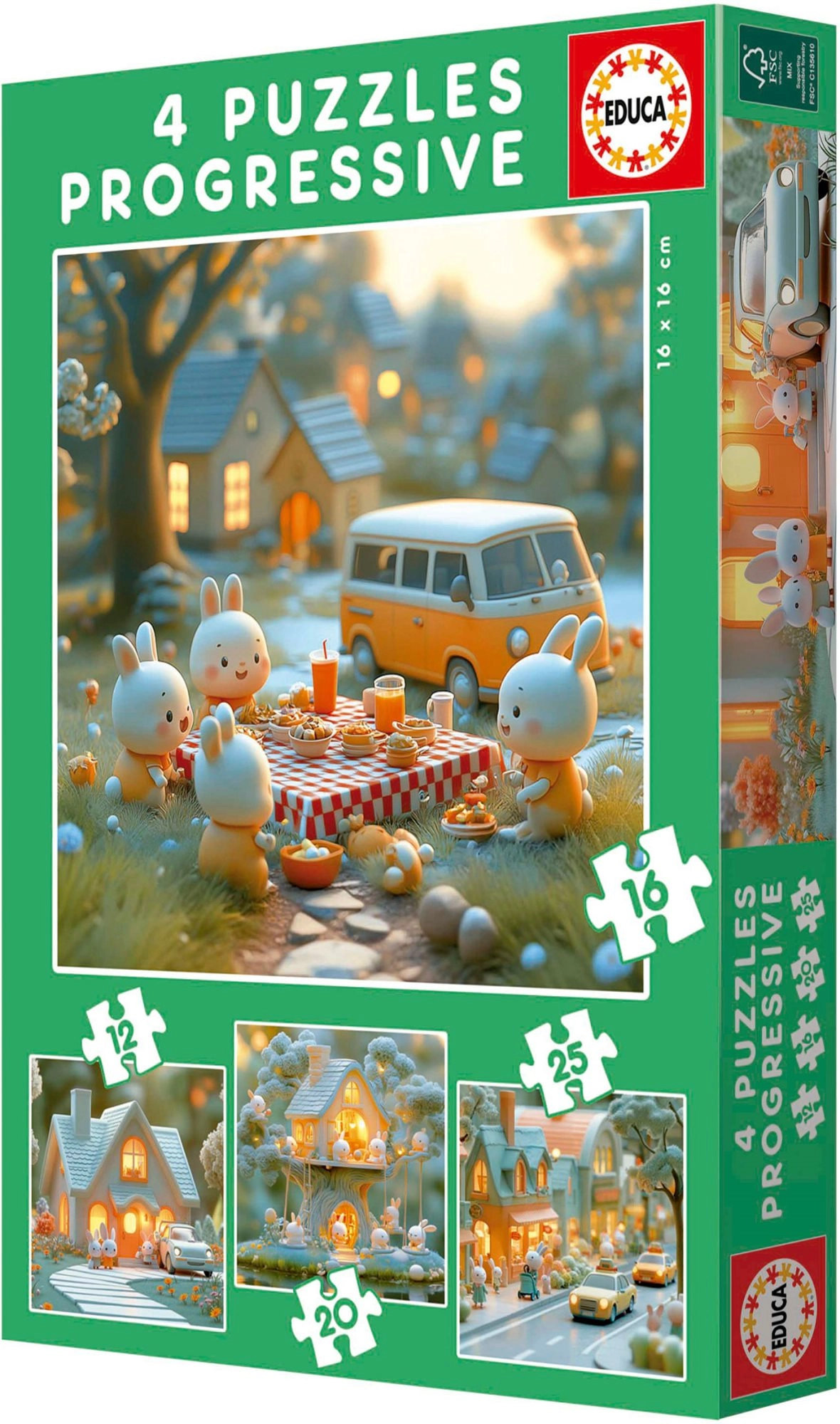 Entdecken Sie die Freude am Puzzeln mit diesem EDUCA-Kaninchenstadt 4v1-Set. Dieses Set bietet vier verschiedene Puzzles mit fortschreitendem Schwierigkeitsgrad: