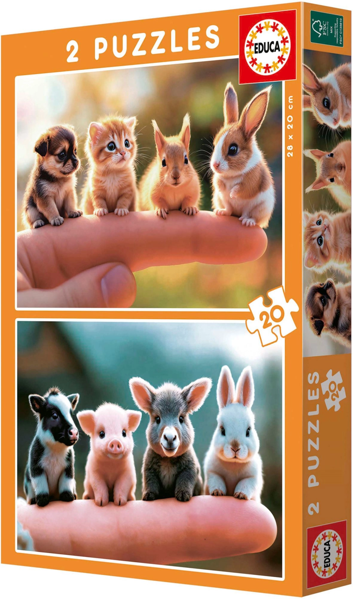 Educa Puzzle Kleine Tiere bietet Spaß und kreative Herausforderung für kleine Kinder. Das Set enthält zwei Puzzle, jedes mit einer Größe von 28 x 20 cm.
