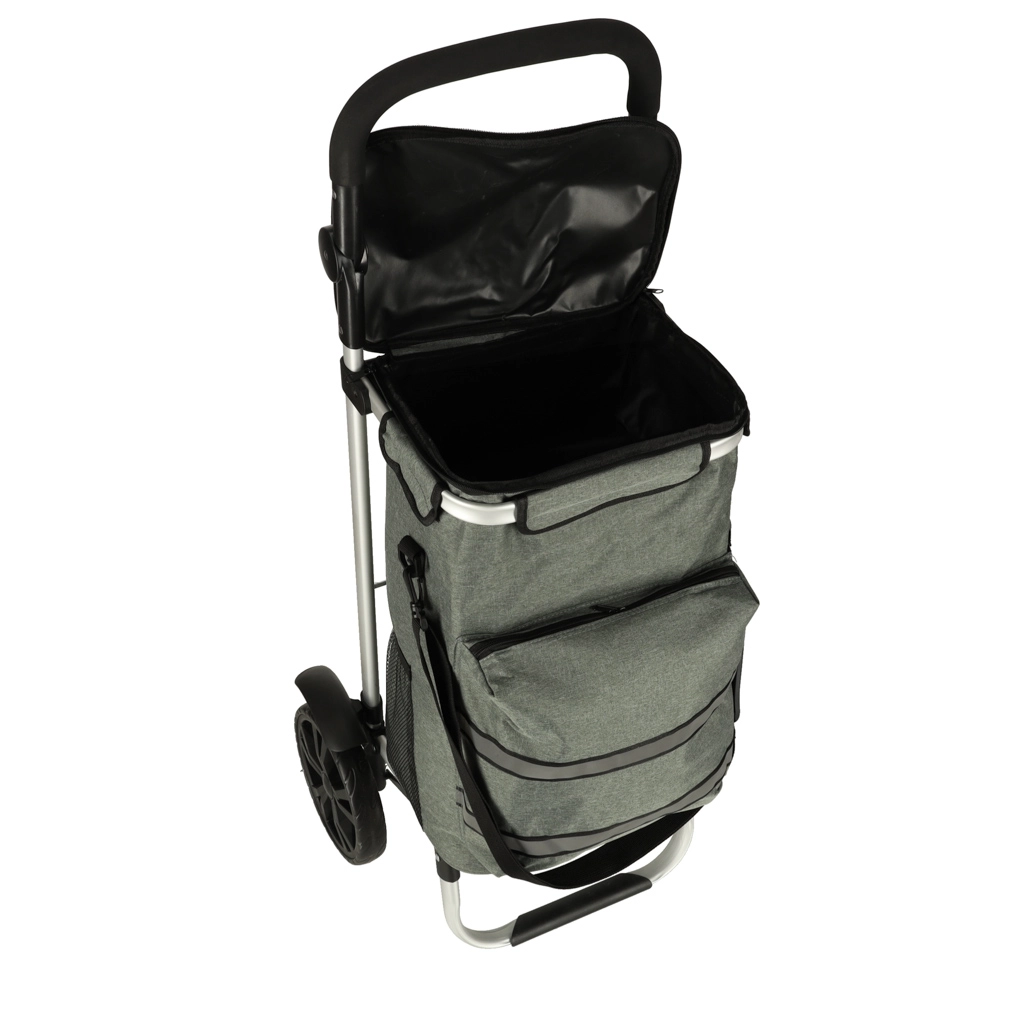 Dank der großen Thermotasche ist dieser Wagen ideal für den Transport von gekühlten Lebensmitteln.