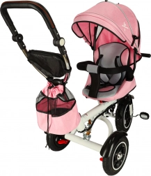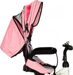 Attraktives und modernes Design zusammen mit einem verstellbaren Griff ermöglichen es den Eltern, die Fahrtrichtung zu steuern. Ein Verdeck mit durchsichtigem Fenster bietet Schutz vor Sonne und Regen und ermöglicht die Überwachung des Kindes. Das Dreirad ist mit Reflektoren, eingebauter Bremse und 2-Punkt-Sicherheitsgurten für maximale Sicherheit ausgestattet. Es ist umwandelbar, was es zu einem idealen Begleiter macht, von jungen Jahren des Kindes bis zu seinem sechsten Lebensjahr.
