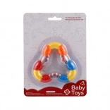 Diese multifunktionale Rassel und Beißring in Dreiecksform ist speziell für die Kleinsten entworfen. Dank dem flexiblen Kunststoff ist das Greifen auch für kleine Hände einfach und bietet eine angenehme Oberfläche zum Beißen, was hilft, das Zahnfleisch zu beruhigen. Das sanfte Rasseln fördert gleichzeitig die auditive Wahrnehmung und zieht die Aufmerksamkeit des Kindes an.