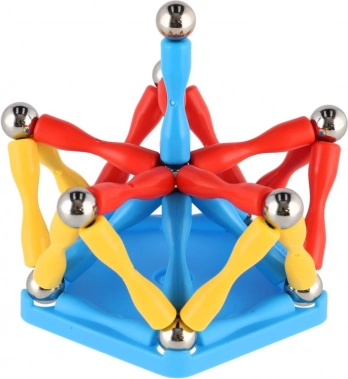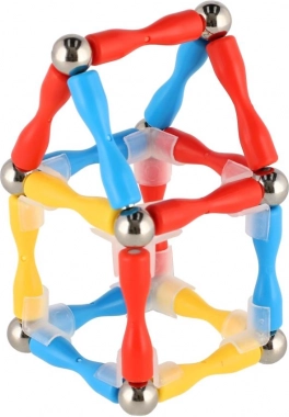 Farbige Kunststoffstäbchen mit magnetischen Enden und Metallkugeln sorgen für schnelle und stabile Verbindungen in vielen Formen. Kinder verinnerlichen spielerisch Prinzipien von Konstruktion und Stabilität.