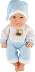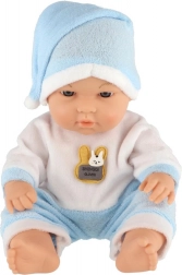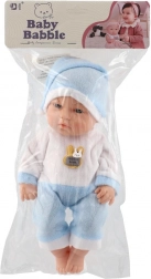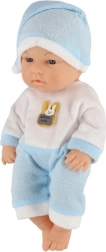 Diese realistische Babypuppe erfreut jedes Kind, das Pflegerollenspiele liebt. Sie hat einen festen Kunststoffkörper, detailreich ausgearbeitete Gesichtszüge und ein weiches Textiloutfit mit Mützchen, das sich leicht an- und ausziehen lässt.