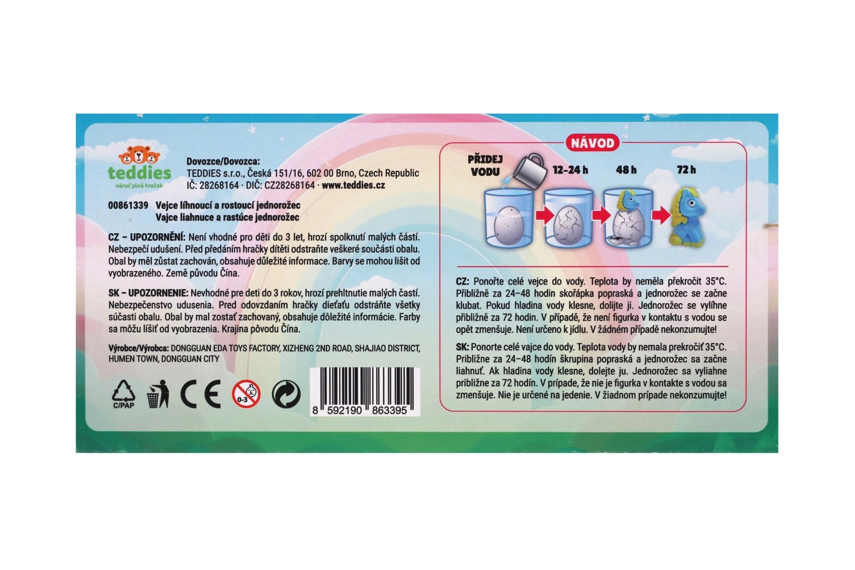 Legen Sie das Ei in ein Gefäß mit Wasser, und nach wenigen Stunden beginnt es zu reißen – im Inneren erscheint ein kleines Einhorn. Dieses wächst über mehrere Tage, bis es seine volle Größe erreicht. Dieses magische Spielzeug fördert kindliche Neugier, Geduld und die Freude am Entdecken.