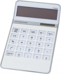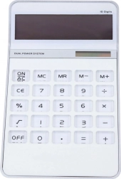 Moderner Bürokalkulator in einem eleganten weißen Gehäuse, der Ästhetik und Funktionalität kombiniert. Sein minimalistisches Design und die deutlich markierten Tasten machen ihn perfekt für jeden Schreibtisch – im Büro, zu Hause oder in Bildungseinrichtungen.