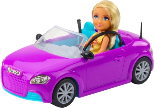 Unterhaltungsset mit Mini-Puppe Ankiki und lila Cabriolet. Ideal für Kinder ab 3 Jahren mit beweglichen Teilen und realistischen Details.