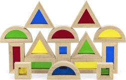 Dreiecke, Quadrate, Rechtecke und Halbkreise fördern das räumliche Vorstellungsvermögen und stabile Konstruktionen beim Stapeln und Schichten.