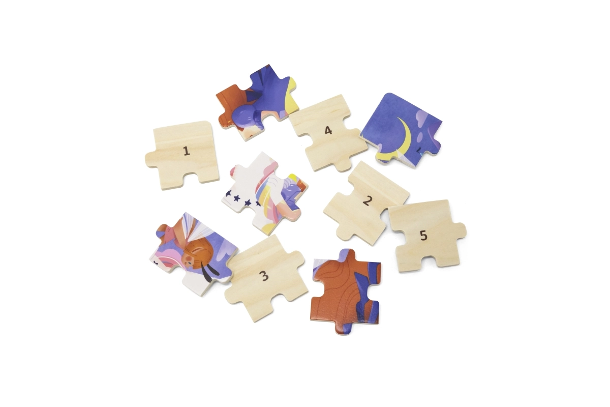 Ideal für Kinder ab 24 Monaten: Das Puzzeln unterstützt Hand-Auge-Koordination, Geduld sowie das Erkennen von Formen und Farben. Die farbigen Illustrationen mit Schloss, Feen und Einhorn regen zum Geschichtenerzählen an und fördern so auch die Fantasie und den Wortschatz.