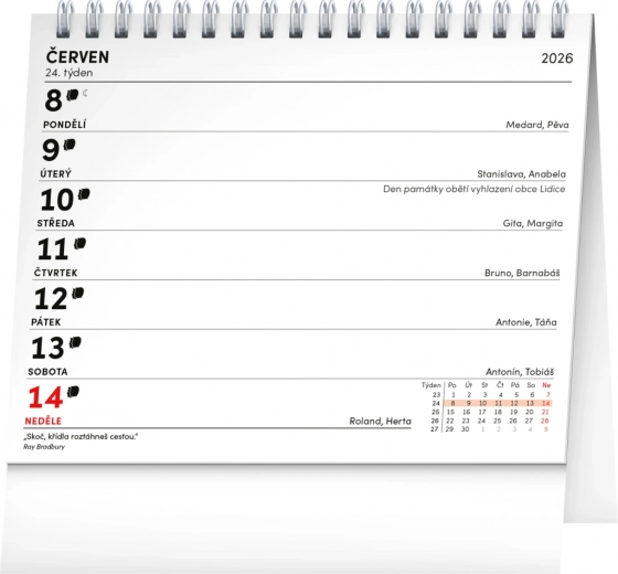Praktischer Tischkalender für das Jahr 2026 bietet einen übersichtlichen Wochenkalender mit ausreichend Platz für Ihre Notizen und inspirierende Zitate für jede Woche.